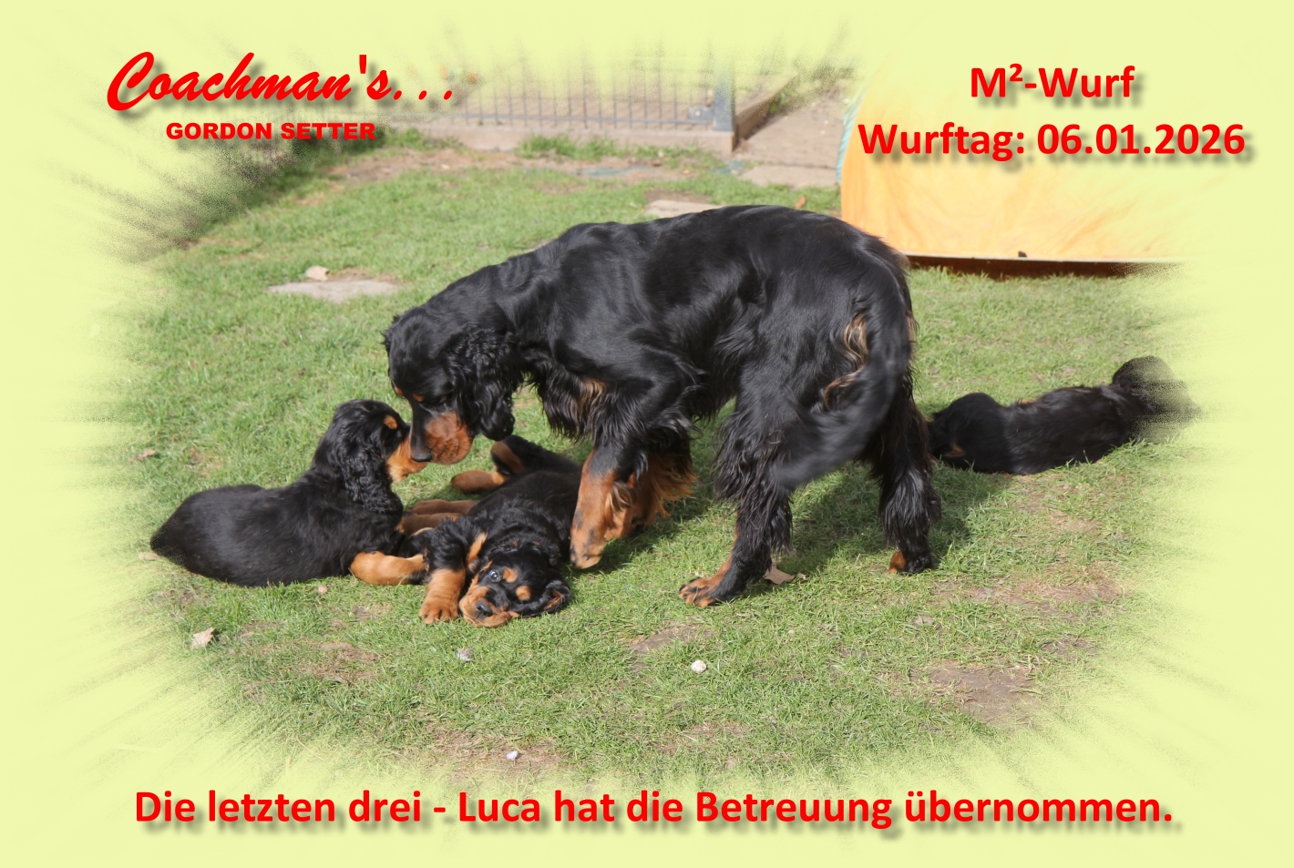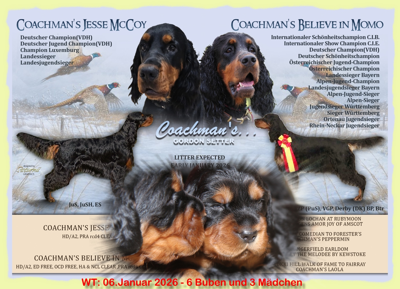 Seit 1995 züchten wir Gordon Setter unter dem Namen "Coachman's..." .